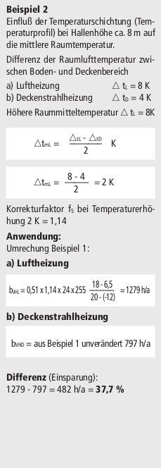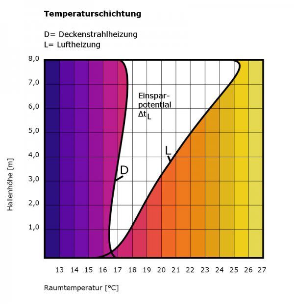 Mittelwerte für die Temperaturschichtung je m Hallenhöhe: